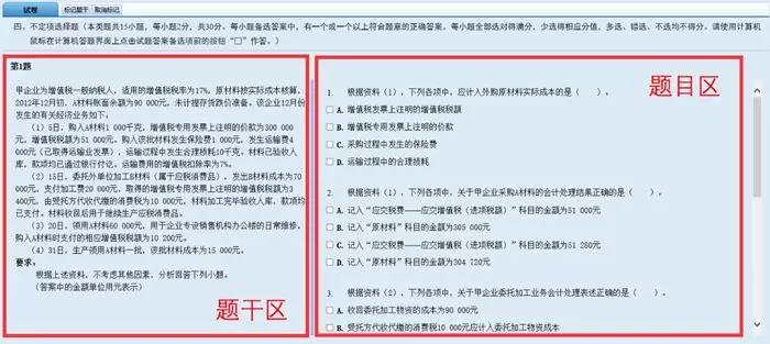 (2)用鼠標(biāo)左右拖動(dòng)題干區(qū)與題目區(qū)之間的分欄條,可增加題干或題目的可視區(qū)域。用鼠標(biāo)上下拖動(dòng)滾動(dòng)條,可改變題干或題目的可視區(qū)域。若因借貸分錄較長(zhǎng),影響科目或金額數(shù)字顯示時(shí),可通過(guò)隱藏題號(hào)列表、拖動(dòng)分欄條或滾動(dòng)條等方法,增加或改變可視區(qū)域。