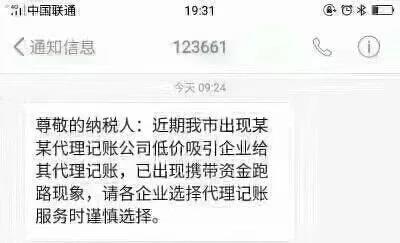 最近,一條稅務(wù)提醒的短信截圖在朋友圈內(nèi)不斷傳播,特別是代理記賬從業(yè)者們,大多都轉(zhuǎn)發(fā)了此圖,如下: